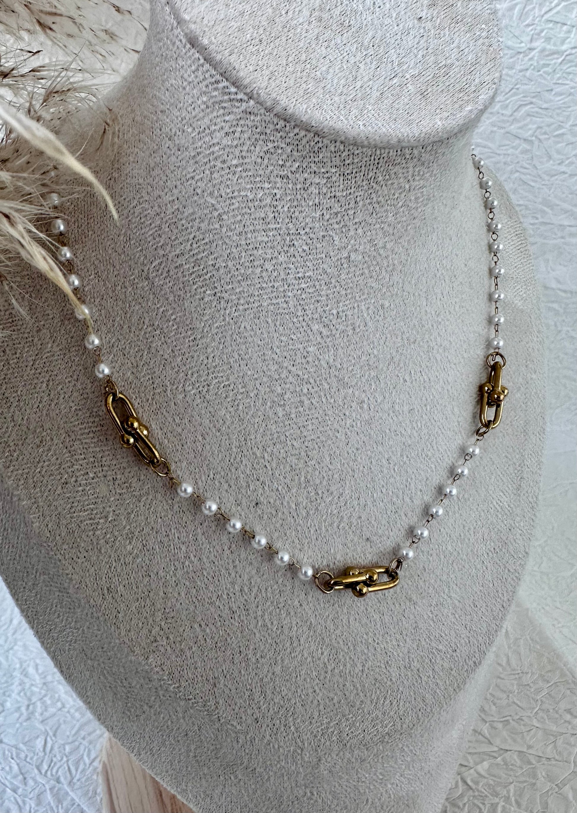 Un collier qui allie la douceur intemporelle des perles à l'éclat du doré.