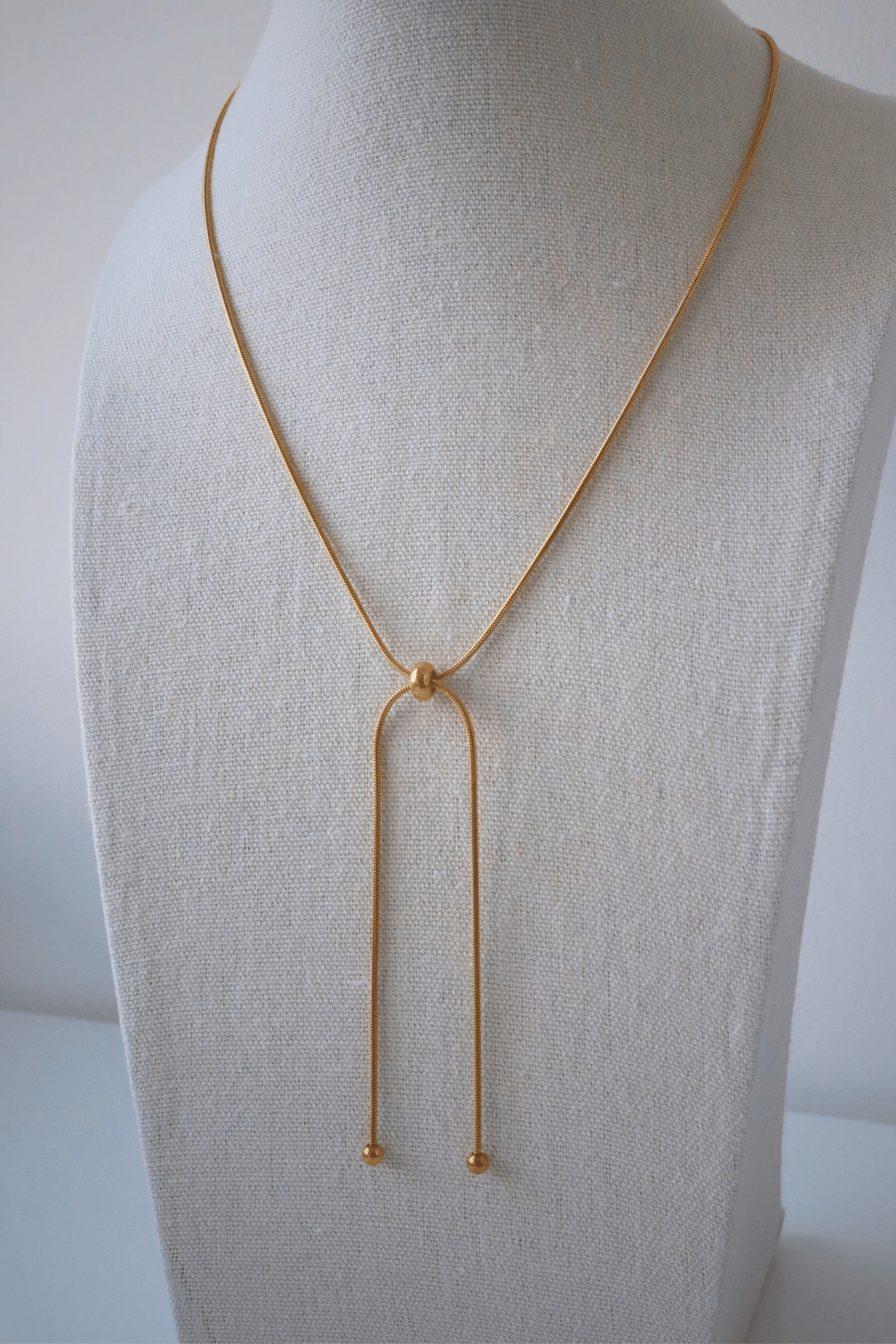 Sa chaîne fine dorée se termine par deux extrémités délicates et une perle centrale coulissante qui permet d'ajuster la longueur à votre guise. Longueur ajustable grâce à la perle centrale